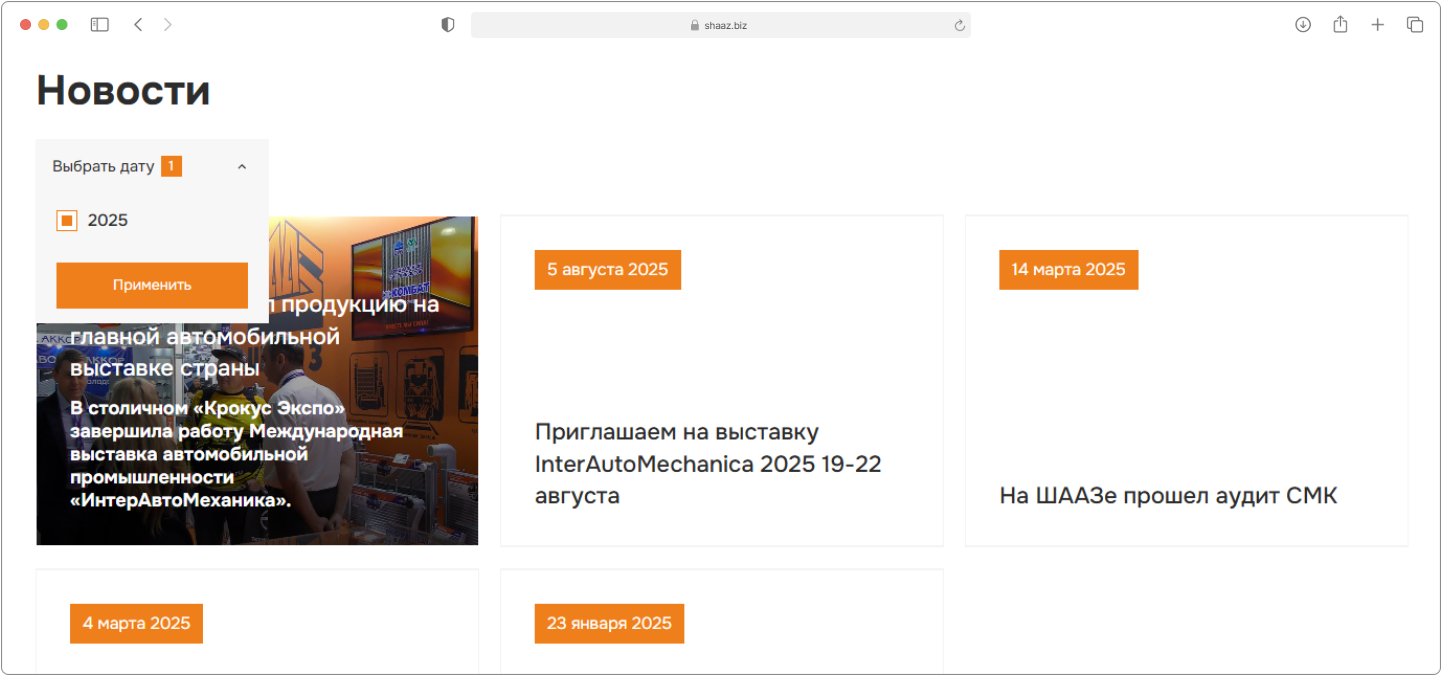В разделе «Пресс-центр» мы реализовали поиск новости по годам. Это позволяет быстро найти нужную информацию.