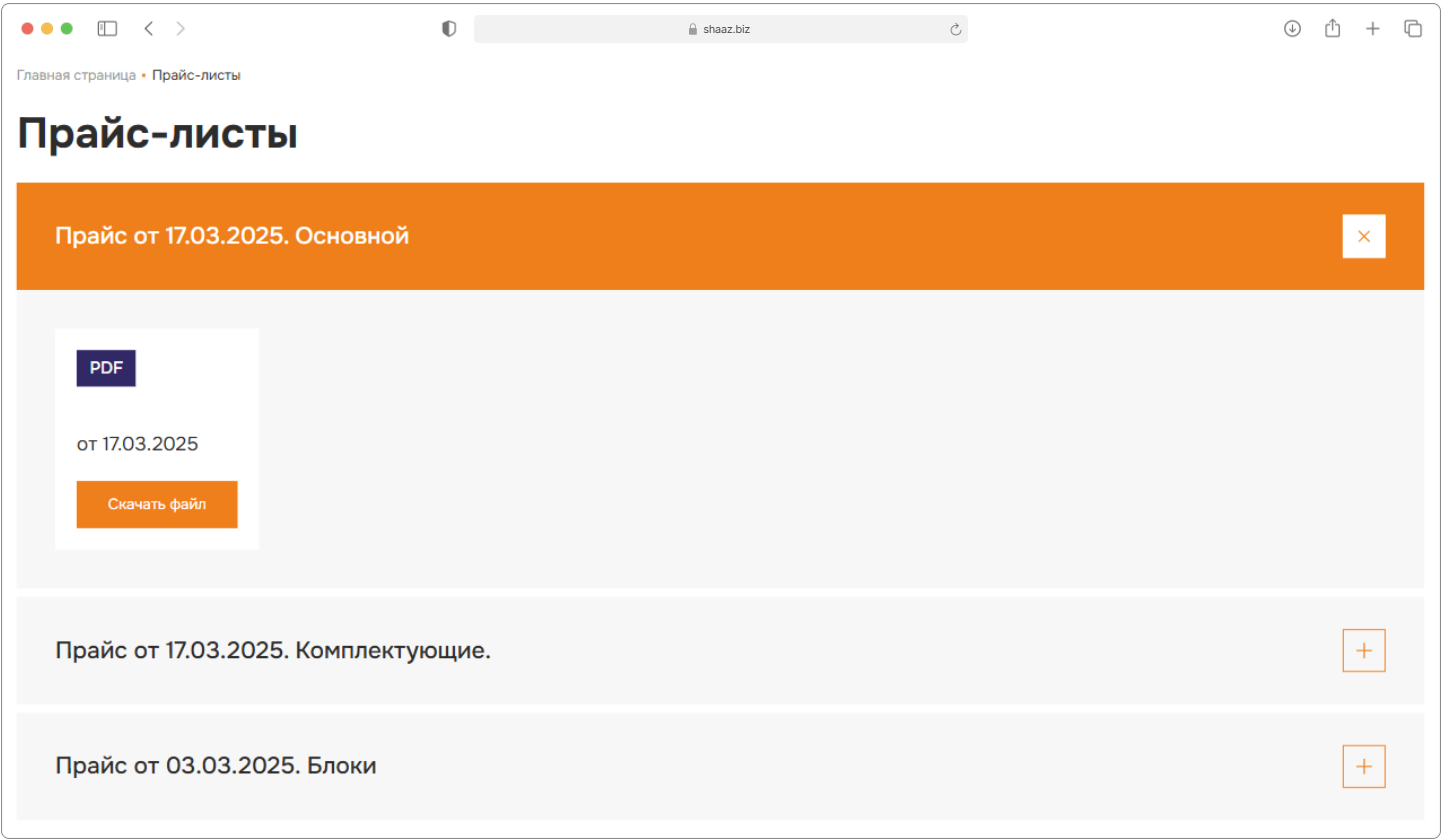 Раздел «Прайс-листы» — структурировали и сгруппировали, чтобы клиенты быстро находили нужное, не теряясь в списках.
