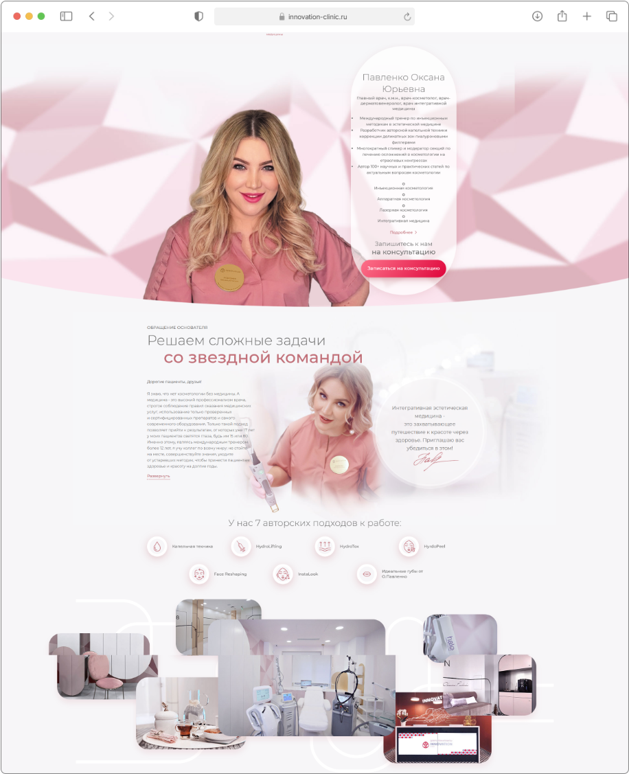 В INNOVATION clinic мы оптимизировали изображения, ускорили загрузку и настроили формы. Раньше страницы сайта грузились 8-10 секунд, сейчас 0,5-1,5 секунды. Сейчас сайт находится у нас на поддержке, и мы следим за его стабильной работой.